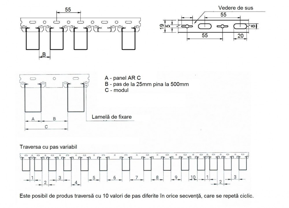 Panourile pot fi livrate de orice lungime, de la 1000 mm la 6000 mm, profile portant (ghidajul) are o lungime standard de 4000 mm.