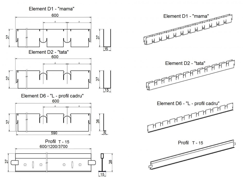 Sistemul de tavan raster CL-G T15 Jaluzele este format din grile în volum separate, formate din intersectarea profilurilor vopsite "mamă" și "tata". De-a lungul perimetrului, grila este încadrată de profiluri în formă de L. Fiecare grilaj separat poate fi ușor așezat în formele sistemului de suspendare „T-profil“ cu lățimea de 15 mm. La finalizarea instalării grilajelor pe sistemul de suspendare, suprafață dă impresia unei structuri monolit, care creează iluzia unui tavan Grillato clasic.